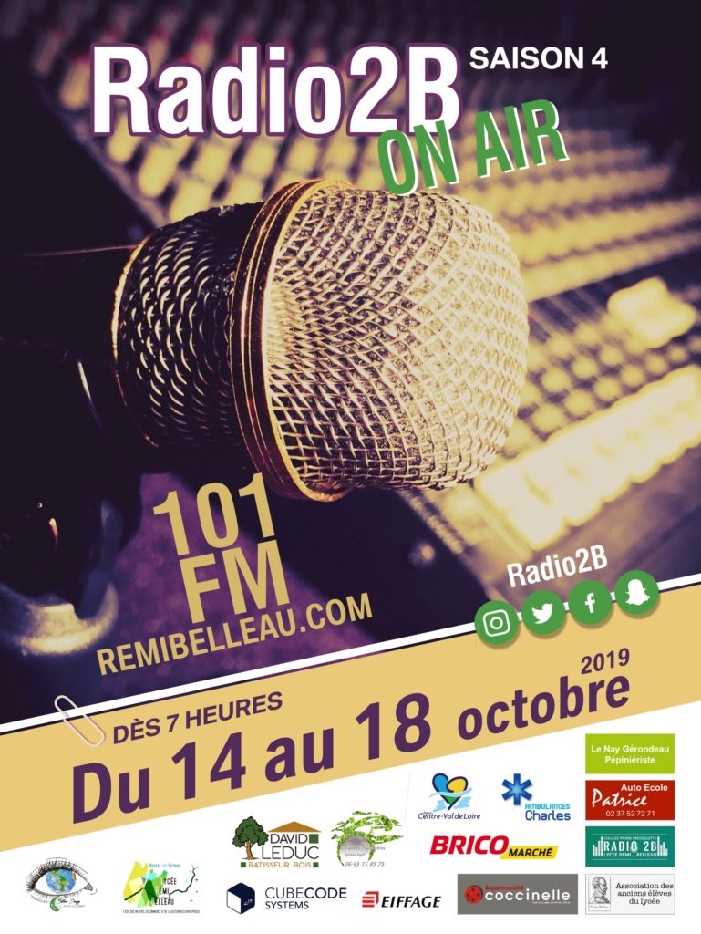 Radio2B on Air Saison 4 mobilise plus de 200 élèves autour de la thématique générale du développement durable. A cette occasion, les élèves reçoivent plusieurs invités exceptionnels tels que Charles Fournier, vice-président de la région Centre-Val de Loire en charge des questions démocratiques et écologiques, et de nombreux scientifiques de renom. C’est également au cours de cette semaine qu’est dévoilé le nouveau logo de Radio2B réalisé par un ancien élève, Dorian Daumesnil.
