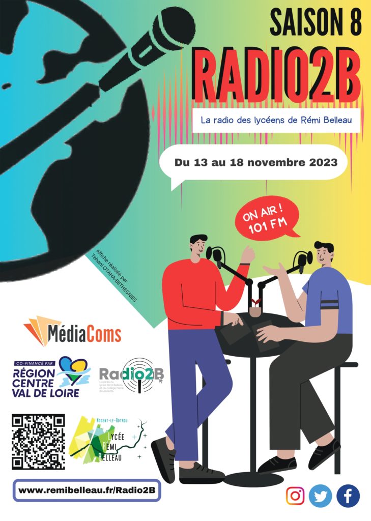 Pour cette nouvelle année scolaire, l’école de Champrond-en-Perchet rejoint l’aventure Radio2B. L’atelier au collège Pierre Brossolette est également relancé. Radio2B mobilise donc des élèves du secteur du CM à la Terminale ! Le logo évolue pour souligner l’ambition territoriale et pédagogique de Radio2B.
